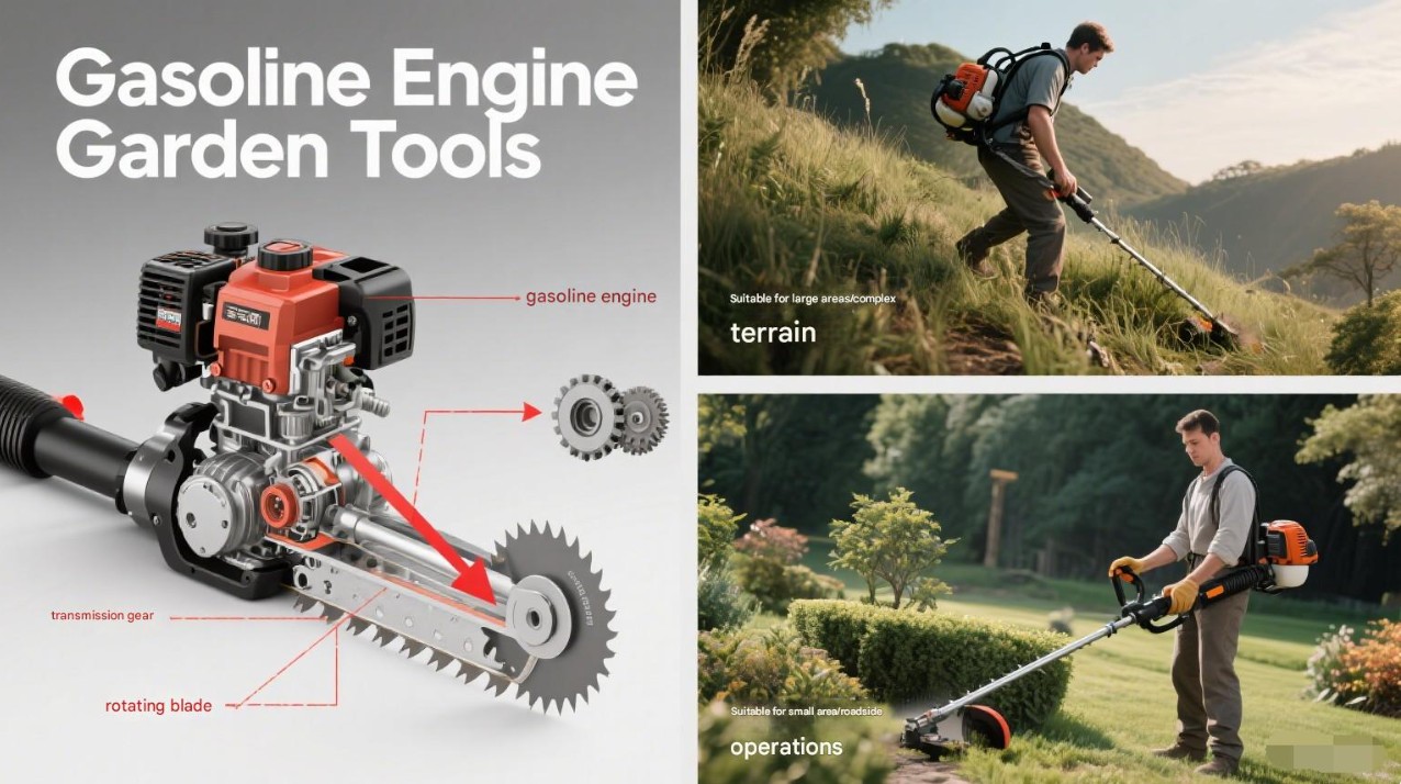 Toepasbaar op een groot aantal tuingereedschappen: als type tuingereedschap met benzinemotor is de benzinebosmaaier geschikt voor grasmaaiers en kan ook worden gebruikt voor multifunctionele tuingereedschappen zoals de multifunctionele bosmaaier en de bosmaaier, en voldoet aan de verschillende behoeften van gebruikers bij tuinonderhoud.