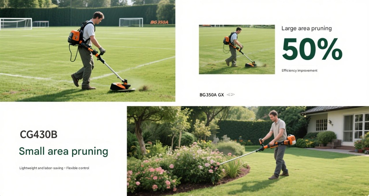 Maaien van kleine oppervlakken: Voor kleine tuinen en onkruid langs de weg kunt u kiezen voor een handmaaier, zoals de CG145 Bosmaaier en Bosmaaier CG430B. Deze modellen zijn licht en gemakkelijk te dragen, eenvoudig te bedienen, geschikt voor kortetermijnwerkzaamheden en kunnen gemakkelijk omgaan met de maaibehoeften van kleine gebieden.