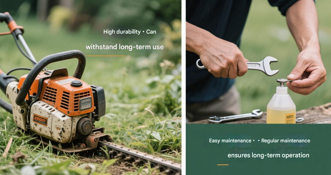 Eenvoudig onderhoud: de benzinebosmaaier is gemakkelijk te onderhouden. Regelmatig, eenvoudig onderhoud en verzorging kunnen ervoor zorgen dat het apparaat in goede staat blijft en de levensduur ervan wordt verlengd.