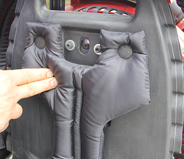 | 02DIKKE BAND RUGKUSSENVerdikte schokabsorberende rugkussens verbeteren het comfort |