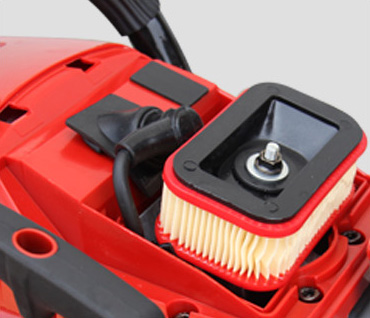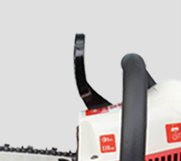 | 02REMBEVEILIGINGSSYSTEEMDe remreactie is gevoelig, verbetert de bedrijfsveiligheid. Het voorste stuur en het achterste stuur zijn in één gemaakt, met een eenvoudige en stevige structuur. Druk op het apparaat om de kettingzaag te stoppen. |