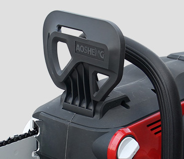 | 02KETTING TERUGSLAG REMHENDELDient als hendel voor het activeren van de kettingrem. Het beschermt ook uitstekende takken en helpt voorkomen dat de linkerhand de zaagketting raakt als deze van de voorste handgreep glijdt. |